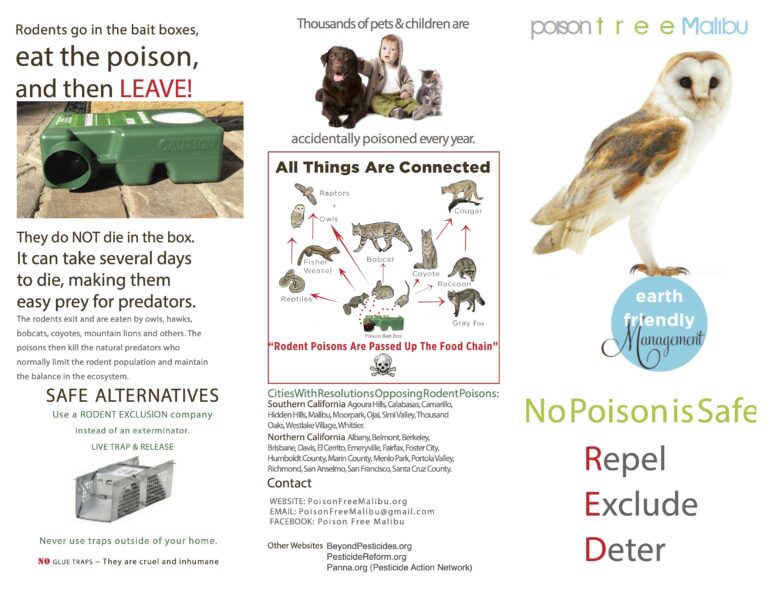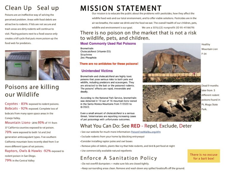 We have a 12 page coloring book of wild animals of the Santa Monica mountains made by the great artist Sandy Glover. Email us if you would like to help distribute them – PoisonFreeMalibu@gmail.com.