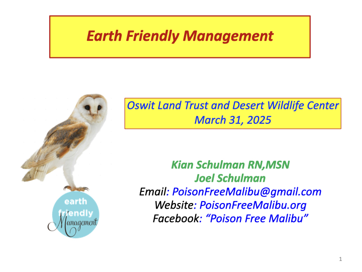 We were delighted to be invited to present a talk on Earth Friendly Management sponsored by these two wonderful environmental and animal rescue organizations in Palm Springs. In addition, the next day, we had a great discussion with the city of Palm Springs environmental staff on implementing Earth Friendly Management.